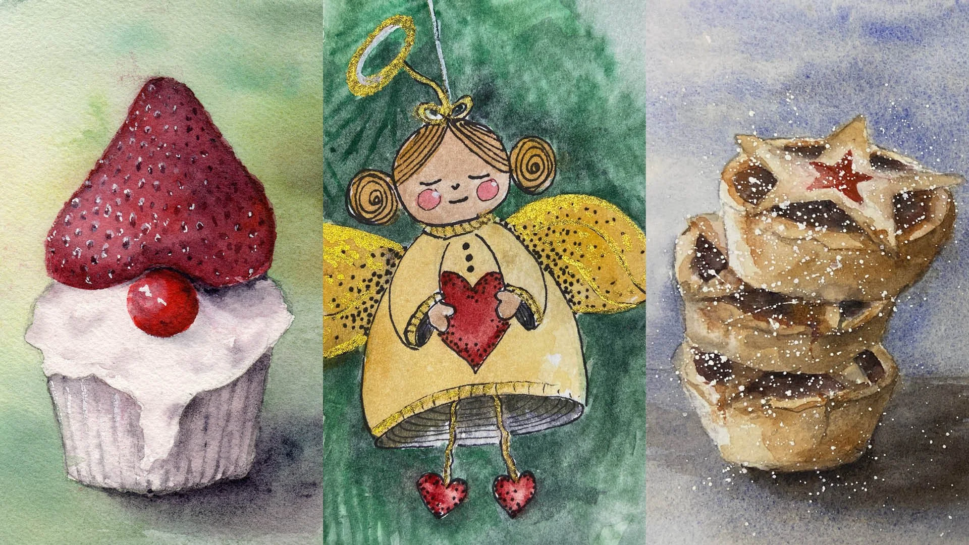 Festive decorations, animals, plants, gifts and treats will guide the imagery for this workshop.